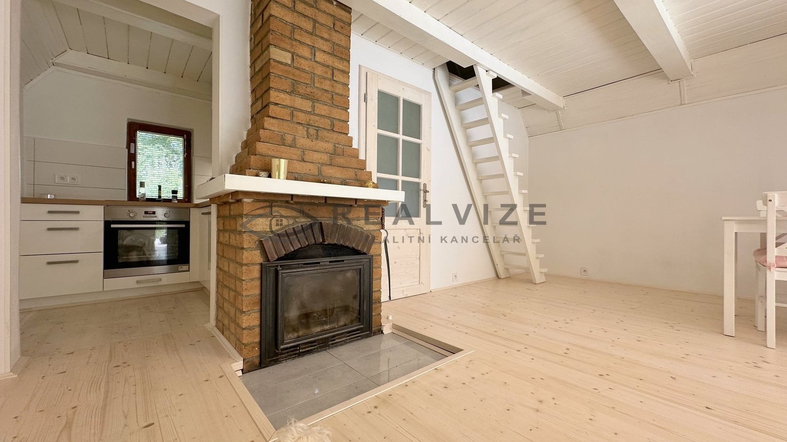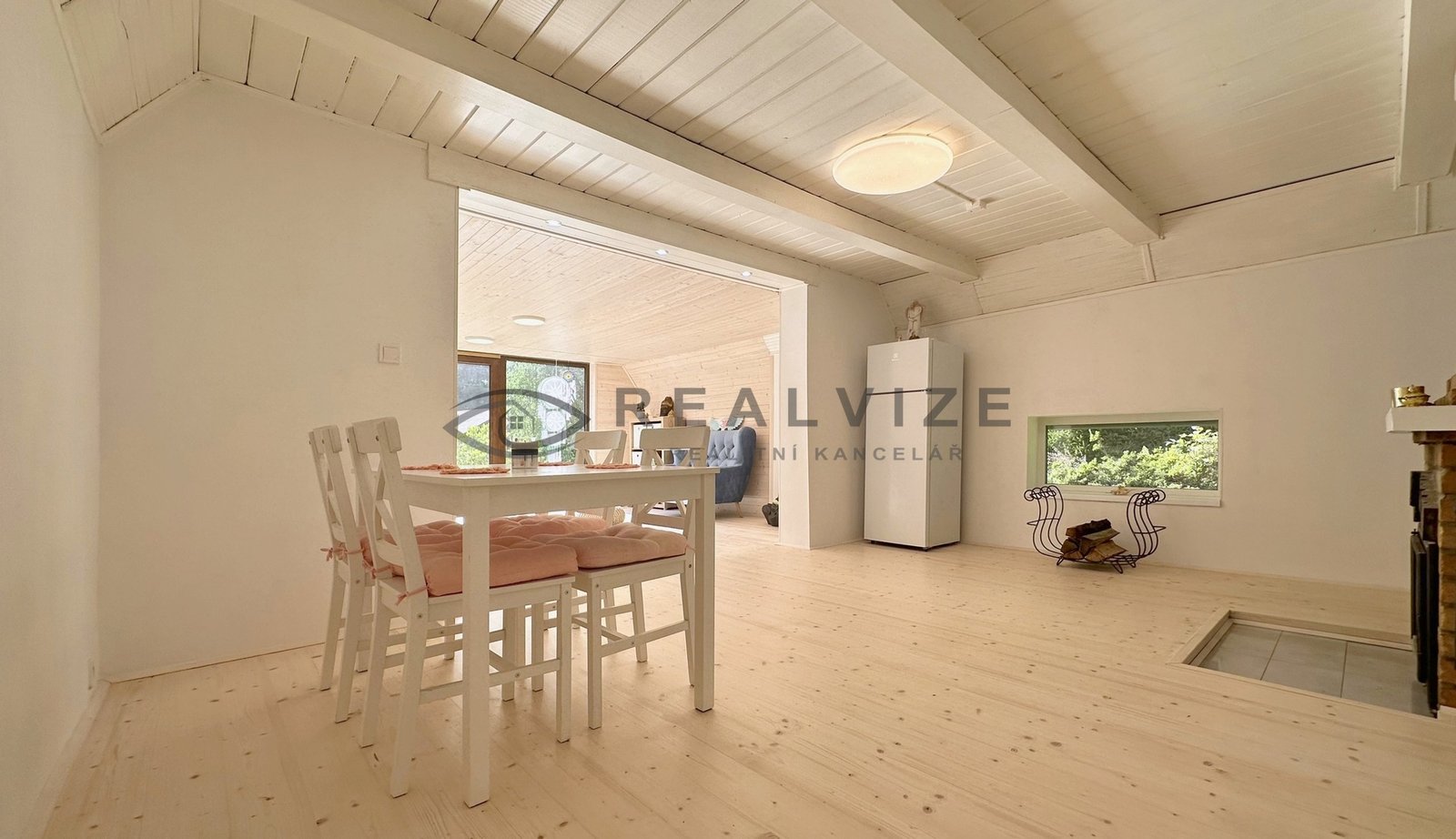 Chata je zrenovována velmi vkusně – vše laděno do světlých odstínů a dřeva.