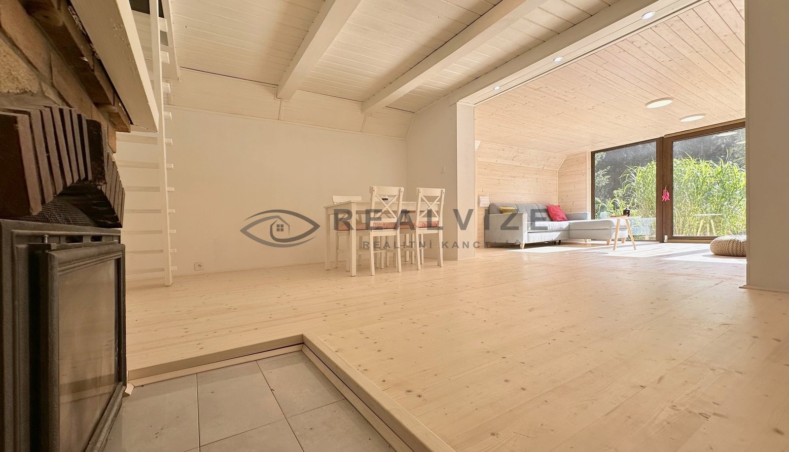 Také nově zvětšil původní prostor a tím získal prostorný obývací pokoj a jižní stranu chaty osadil velkými okny, díky kterým je přízemí chaty nádherně prosluněné.