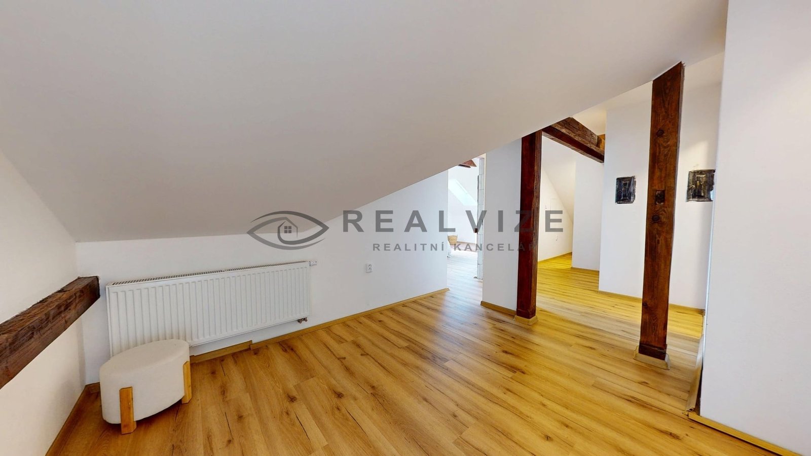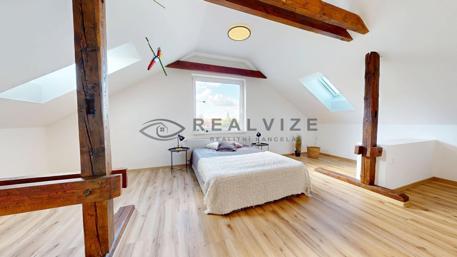 Podkroví, které je nově vybudované, nabízí další dva pokoje, koupelnu, samostatný záchod a úložný prostor.