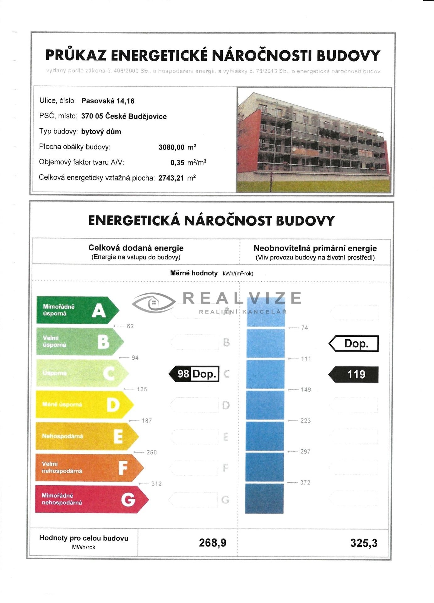Nabízíme k pronájmu částečně vybavený byt o dispozici 3+kk (93 m2) s terasou (13 m2) v ulici Pasovská, v Č. Budějovicích. Byt je ve 3. patře domu s úžasným výhledem z terasy přímo do Stromovky. Byt je nabízen vybavený nábytkem a úložnými prostory, jak je prezentováno na fotografiích. Nabízí velkou vstupní halu se šatnou, obytnou místnost s jídelním a kuchyňským koutem se vstupem na terasu, dětský pokoj a ložnici, koupelnu a samostatné WC.