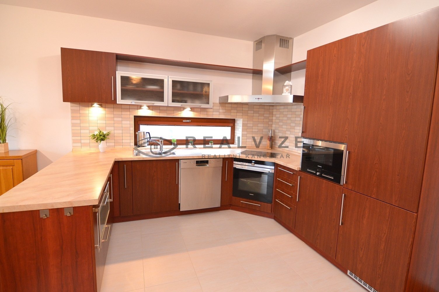 Kuchyňská linka se spotřebiči (vestavěná lednice, horkovzdušná a mikrovlnná trouba, indukční deska, myčka, digestoř). Veškeré podlahy jsou z dubového dřeva, podlahové vytápění, radiátory, bezpečnostní dveře. Bezproblémové parkování před domem. Nákupní zóna, lesopark a centrum města jsou v docházkové vzdálenosti. Nájemné je stanoveno na 25.000,-Kč /měsíc, zálohy na služby spojené s užíváním bytu jsou stanoveny na 6.500,-Kč, majitel požaduje kauci ve výši 60.000,-Kč, provize RK 30.250,-Kč. Volné ihned.